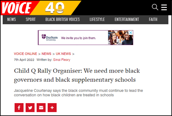 For her work on the Child Q rally and calling for change to the way police operate in schools, Jacqueline has been featured on BBC Radio London, Sky News, The Voice, Stand Up to Racism UK, BBC News, BBC Woman’s Hour and BBC Breakfast.